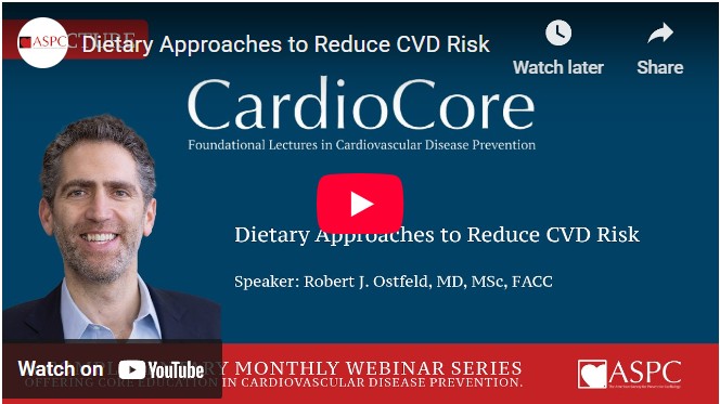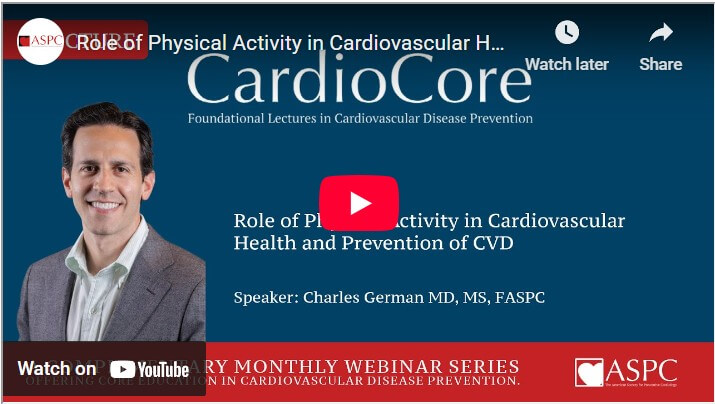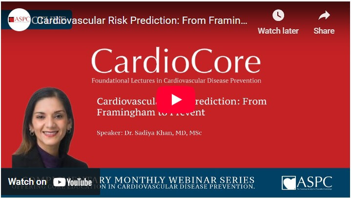 We are pleased to announce the launch of a new webinar series through the ASPC called CardioCore: Foundational Lectures in Cardiovascular Disease Prevention. This series is aimed primarily at trainees (though anyone is free to attend) who may not have access to dedicated preventive cardiology programs at their home institutions. We are planning to present one lecture each month.